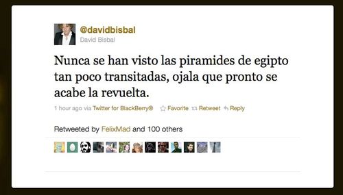 – El #turismoBisbal con su comentario sobre el conflicto de Egipto.